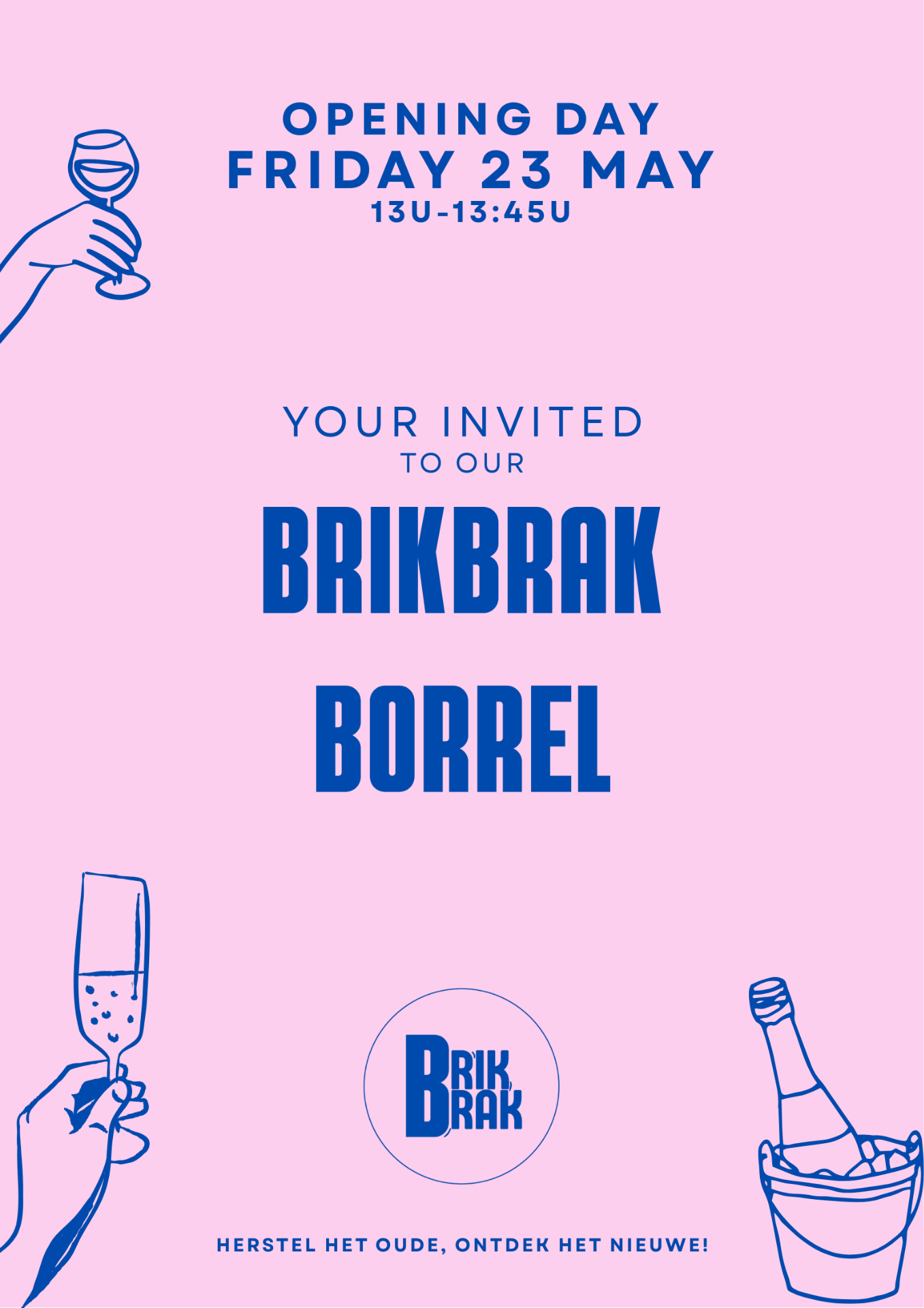 Kom langs voor de feestelijke opening van Brik Brak! Ontdek onze duurzame tweedehandsconcepten terwijl je geniet van een gezellige borrel. Leer meer over de Brik Brak-Boutiek, ruil met Brikjes en bekijk de Brik Brak-Box. Een inspirerende middag vol ontmoeting, hergebruik en plezier